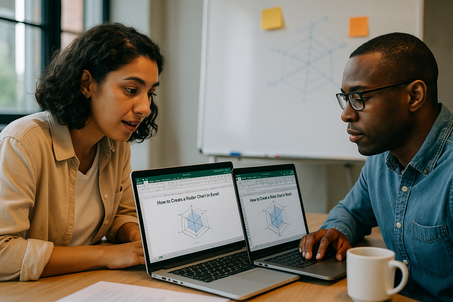 Spider (radar) charts plot several variables on axes radiating from a central point and connect them into a polygon, making complex multivariate data easy to see at a glance. They help compare strengths, weaknesses, patterns and outliers. In Excel you simply lay out the data, choose Insert → Radar, then tweak titles, labels, colours and axes to suit.