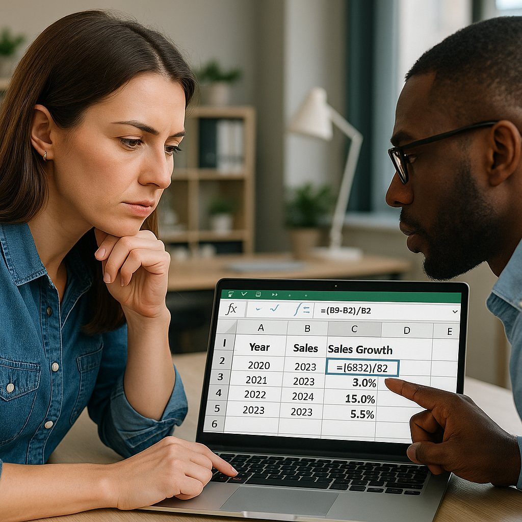 Instead, why not use the Excel formula for percent increase? It helps you instantly see the percentage increase/difference between two numbers, without having to do the math by hand.